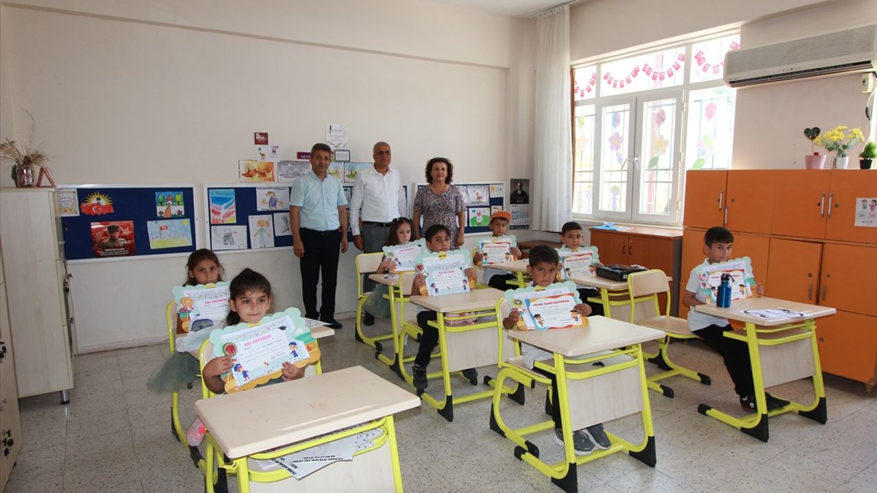 Beyreli İlkokulu'nda düzenlenen karne töreninde, öğrencilere karnelerini İlçe Milli Eğitim Müdürü Ahmet Karaltı, Okul Müdürü Alper Ünver ve sınıf öğretmenleri verdi.