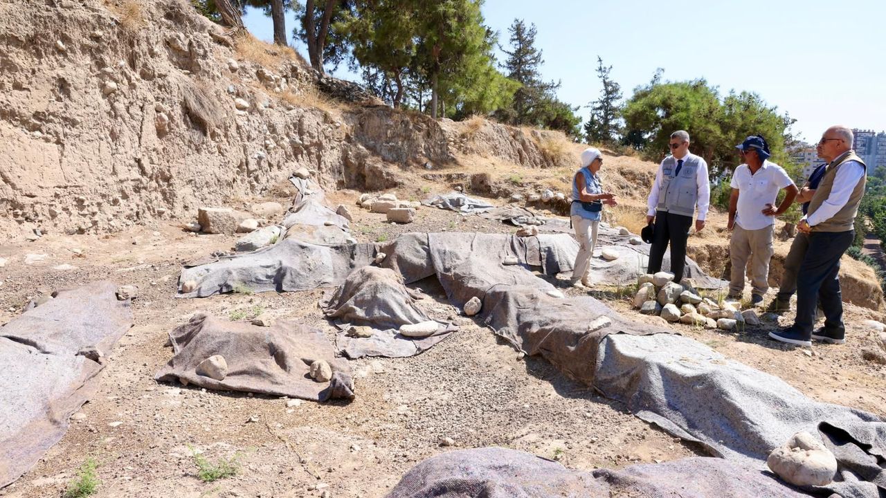 MERSİN (AA) - Mersin Valisi Atilla Toros, Yumuktepe Höyüğü'nde yürütülen çalışmaları inceledi.
