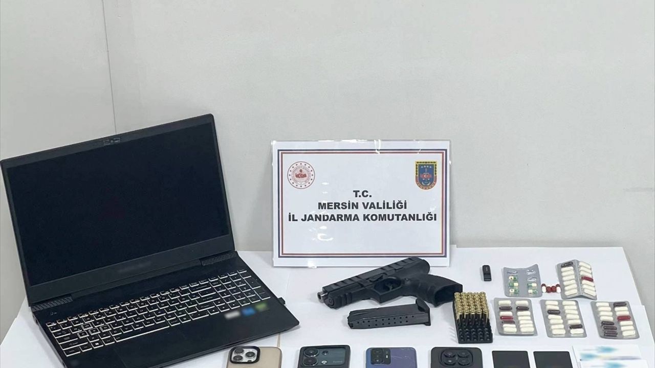 İkametteki aramada, tabanca, şarjör, 30 fişek, dizüstü bilgisayar, 4 cep telefonu, harici bellek, 6 SIM kart, bir miktar uyuşturucu hap ve yurt dışı banklarına ait 3 kart ele geçirildi.