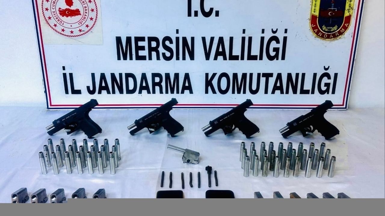 Zanlının ikametinde 4 ruhsatsız tabanca, 4 şarjör, 49 namlu, 12 mekanizma ve 7 yay ele geçirildi.