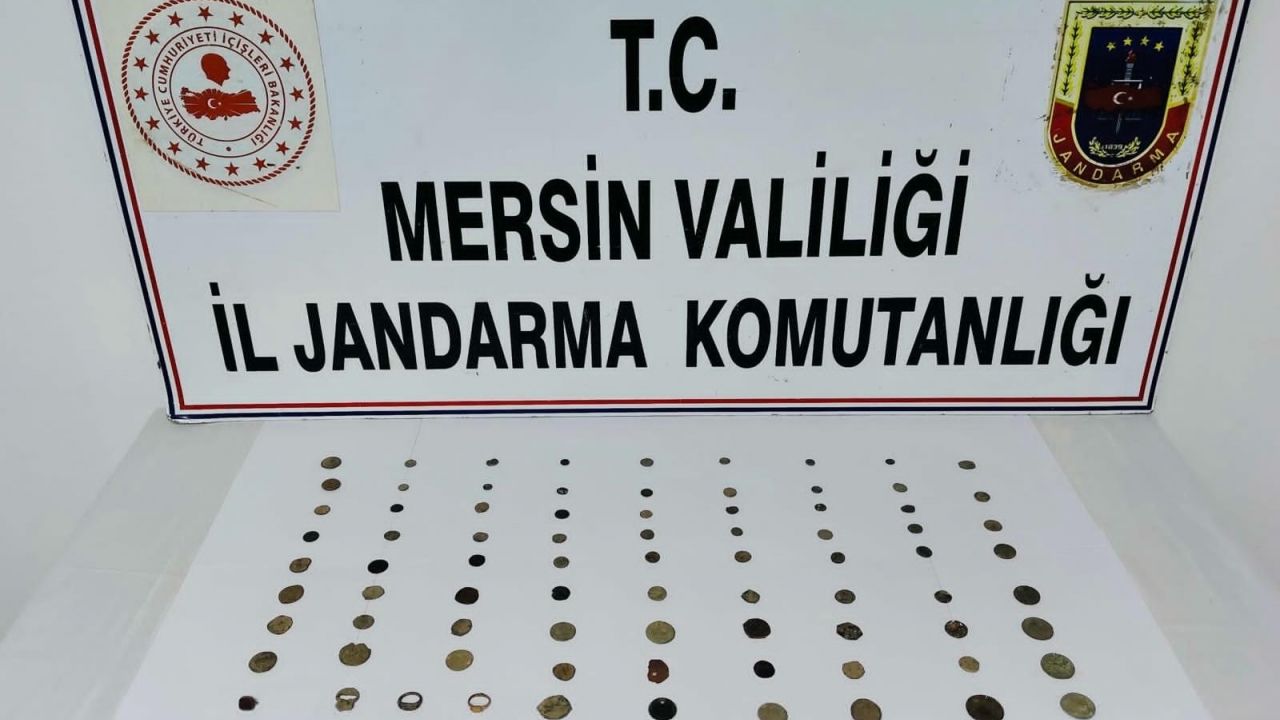 MERSİN (AA) - Mersin'de, aracında Roma ve Bizans dönemlerine ait olduğu değerlendirilen 76 sikke ile 4 yüzük ele geçirilen şüpheli gözaltına alındı.