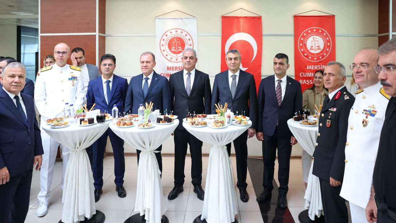 Mersin Adliyesi'nde düzenlenen programda, Vali Atilla Toros ve Cumhuriyet Başsavcısı Ahmet Çelikkol davetlilerle sohbet etti.