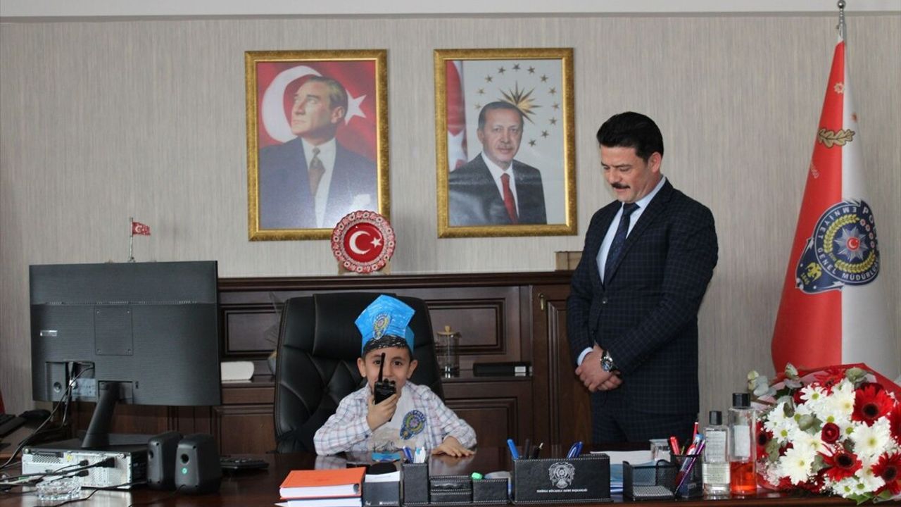 Keloğlan Anaokulu öğrencileri, Türk Polis Teşkilatının 181. kuruluş yıl dönümü etkinlikleri kapsamında İlçe Emniyet Müdürü Berat Günçiçek'i ziyaret etti.