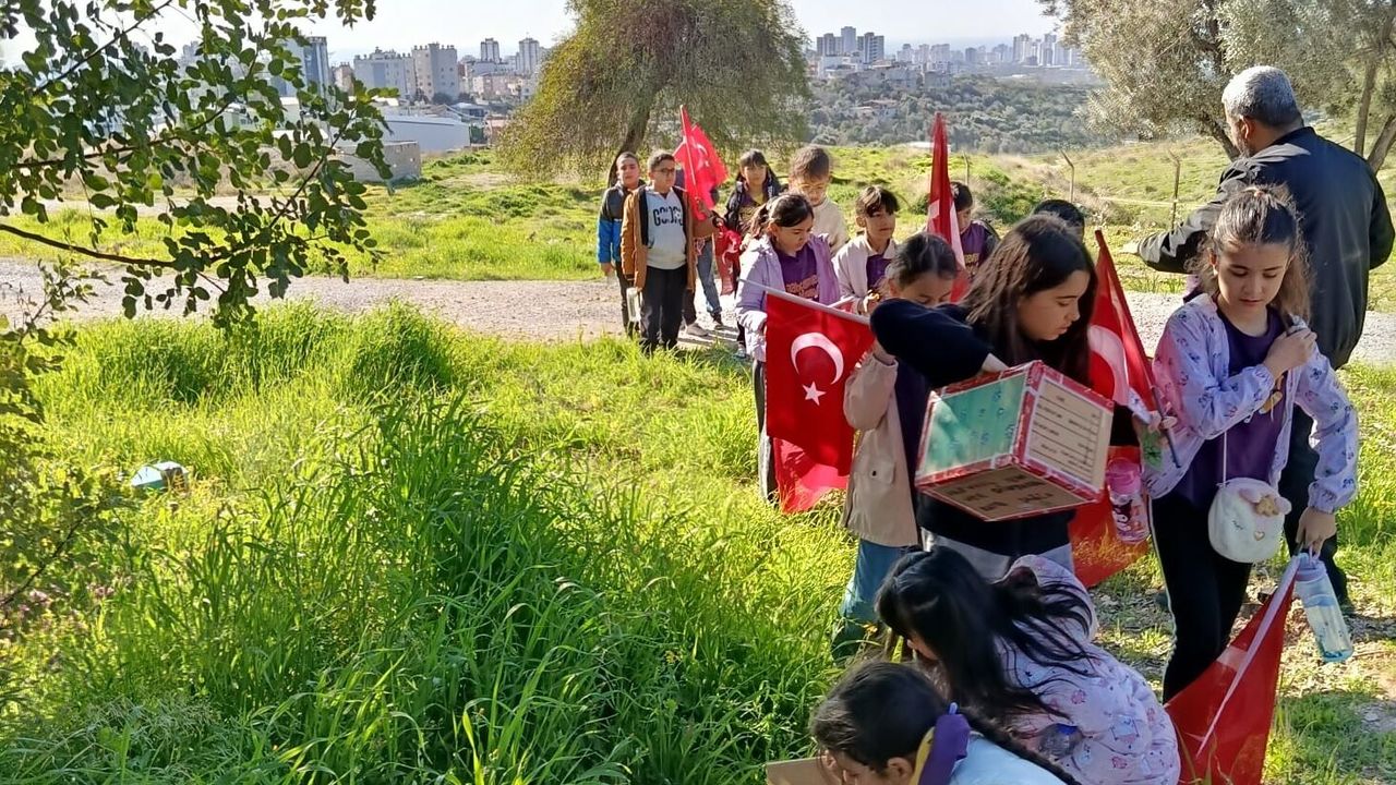 MERSİN (AA) - Mersin'de Aile ve Sosyal Hizmetler İl Müdürlüğünün etkinliğinde çocukların tasarladığı kuş yuvaları doğaya bırakıldı.
