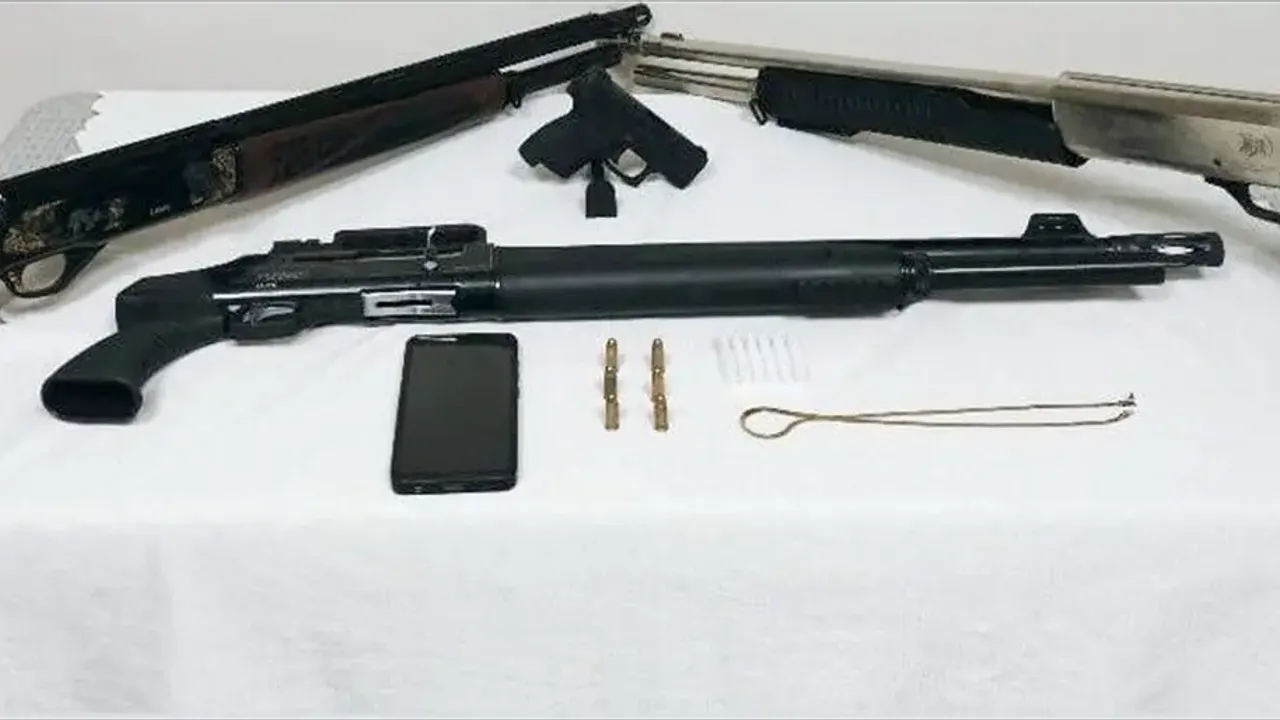 Gözaltına alınan zanlıların adreslerinde 3 tüfek, tabanca, 6 fişek ile müştekinin telefonu ve kolyesi bulundu.