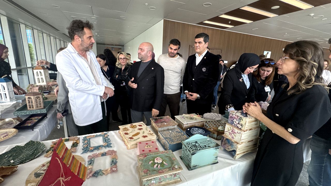 Hastanede tedavi gören vatandaşların hazırladığı süs eşyaları, tablolar ve el emeği ürünler, 'Bir Damla Su Bir Umut' adlı etkinlikte sergilendi.