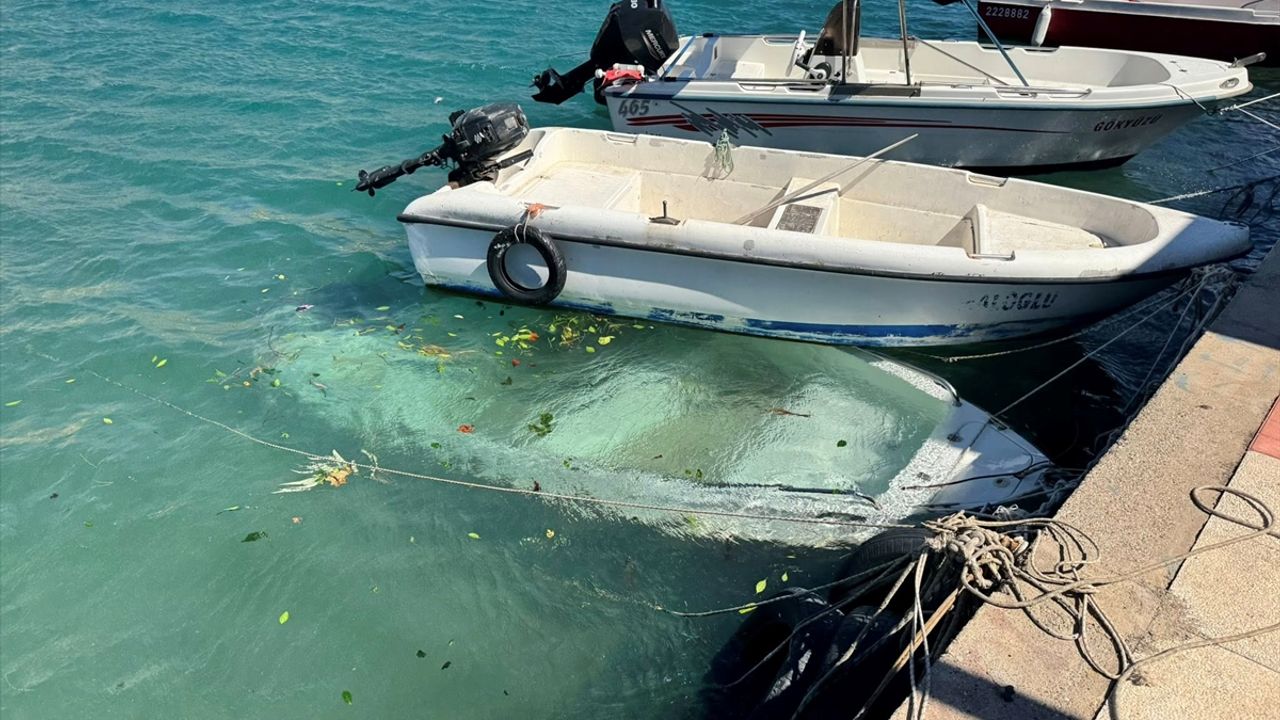 Fırtına nedeniyle Aydıncık Limanı'nda kıyıya bağlı teknelerde 2'si battı.