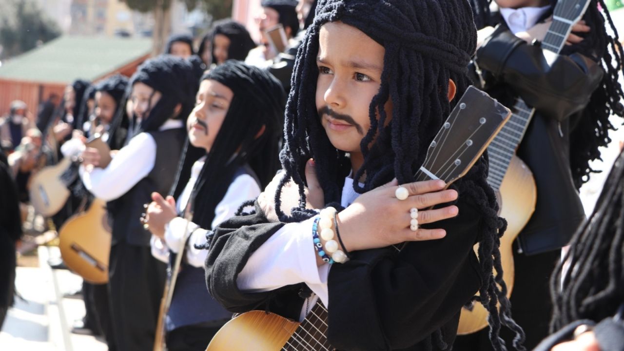 Barış Manço'nun giydiği kostümleri giyen çocuklar, sanatçıya ait şarkıları seslendirdi.