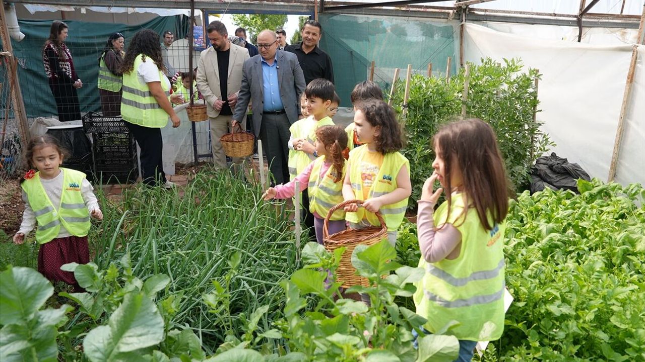 Belediyeden yapılan açıklamaya göre, Şehit Musa Özalkan Kreş ve Gündüz Bakımevi öğrencileri Çocuk Serası Projesi kapsamında belediyeye ait seraya 70 gün önce sebze dikti.