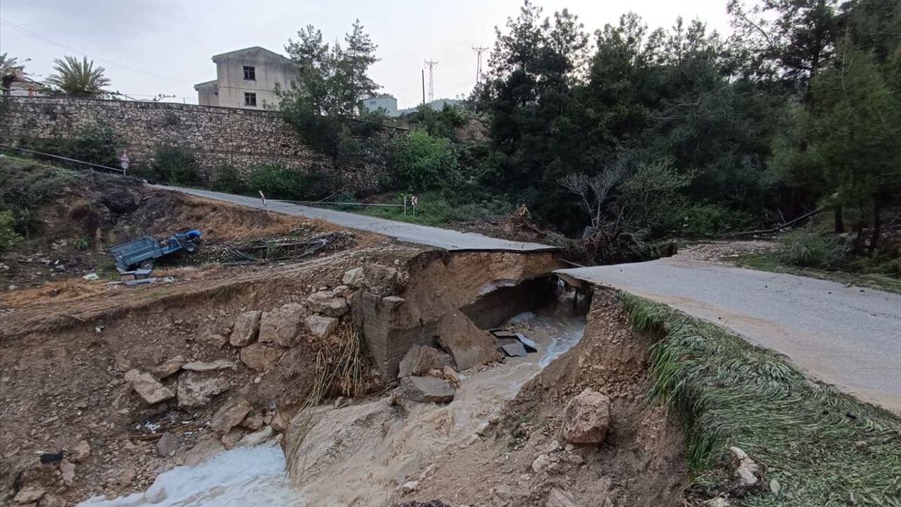 MERSİN (AA) - Mersin'in Silifke ilçesinde etkili olan sağanak nedeniyle mahalle yolunda çökme meydana geldi.