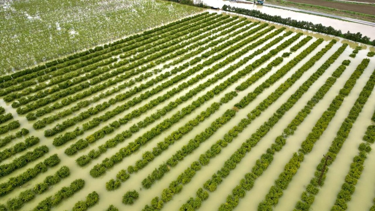 MERSİN (AA) - Mersin'in Tarsus ilçesinde dün etkili olan sağanak nedeniyle su altında kalan tarım arazileri dronla görüntülendi.