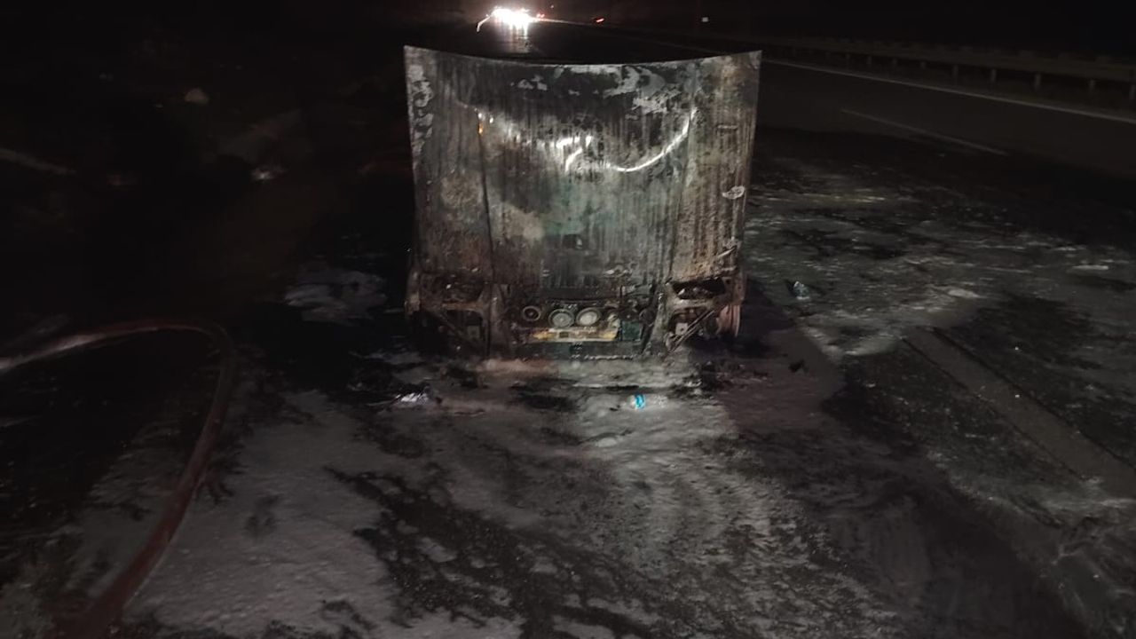 Yangını fark eden sürücü, aracını yol kenarına çekip itfaiyeden yardım istedi.