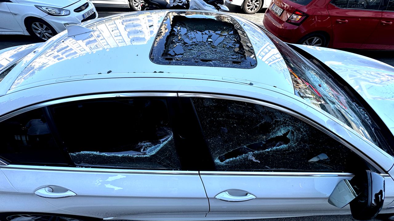 Şüphelilerin park halindeki 2 otomobile zarar vermesi, güvenlik kamerasınca kaydedildi.