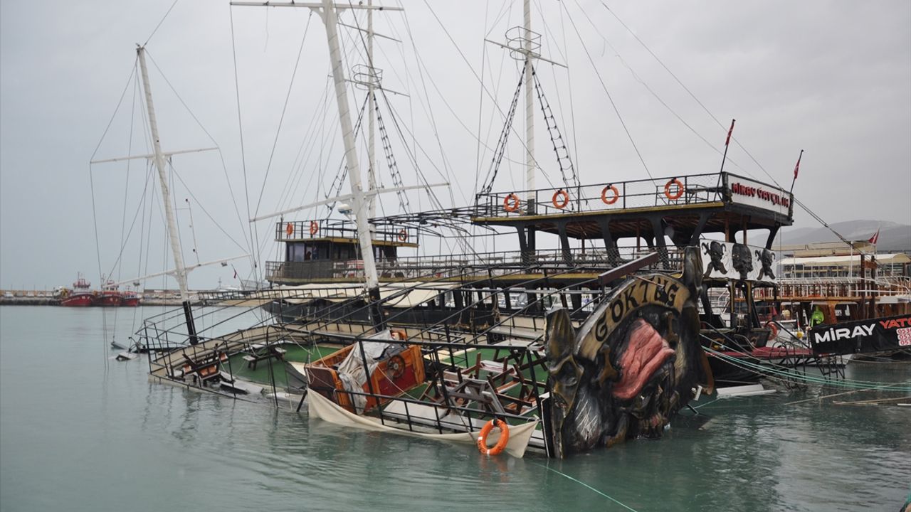 İlçede gece saatlerinden itibaren etkili olan fırtına nedeniyle Taşucu Balıkçı Barınağı'nda bağlı olan 130 yolcu kapasiteli ve yaklaşık 25 metre uzunluğundaki bir tur teknesi yan yatarak battı.
