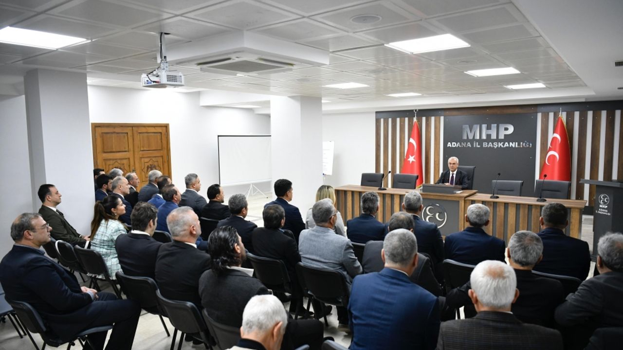 MHP Adana İl Başkanlığı Seçim Koordinasyon Merkezi'nin de tanıtıldığı toplantıya il divan kurulu üyeleri, ilçe başkanları ve belediye başkan adayları katıldı.