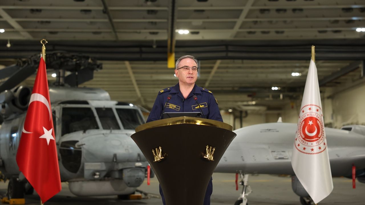 MSB Basın ve Halkla İlişkiler Müşaviri ve Bakanlık Sözcüsü Tuğamiral Zeki Aktürk, Denizkurdu-I Tatbikatı'nın Seçkin Gözlemci Günü dolayısıyla TCG Anadolu'da düzenlenen haftalık basın bilgilendirme toplantısında konuştu.