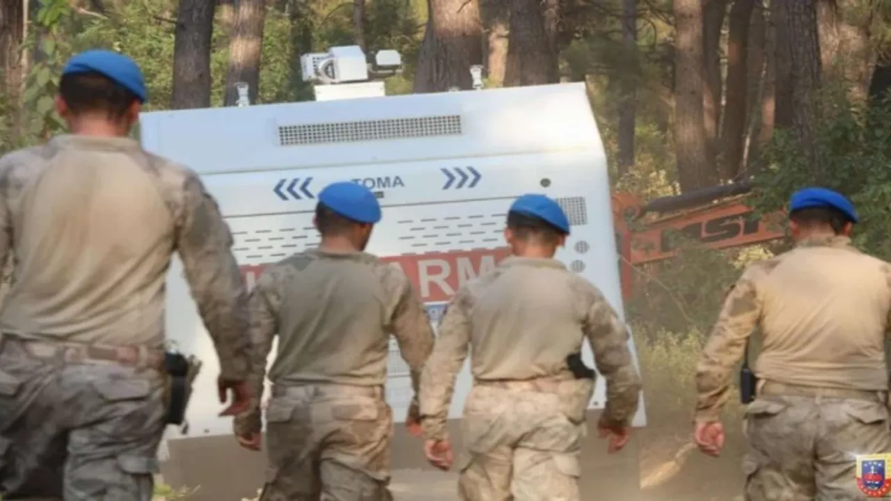 "Orman Bölge Müdürlüğünce gerçekleştirilen saha çalışmalarını ve hukuka uygun olarak alınan önleyici tedbirleri engellemek ve provoke etmek isteyen, kolluk kuvvetlerine saldıran ve direnen 40 provokatör ve eylemci şahıs Milas Cumhuriyet Başsavcılığı'nın talimatıyla gözaltına alınmış olup şüphelilerin adli işlemleri devam etmektedir.