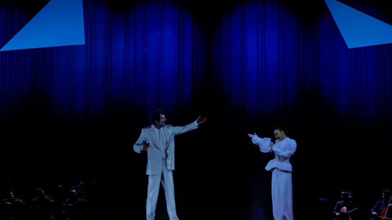 İSTANBUL (AA) - Türk Telekom 5G'nin sunduğu 'ultra düşük gecikme', 'yüksek hız' ve 'eş zamanlı bağlantı' özelliklerinden faydalanarak hologram teknolojisi sayesinde merhum sanatçı Müslüm Gürses'i sahneye taşıdı.