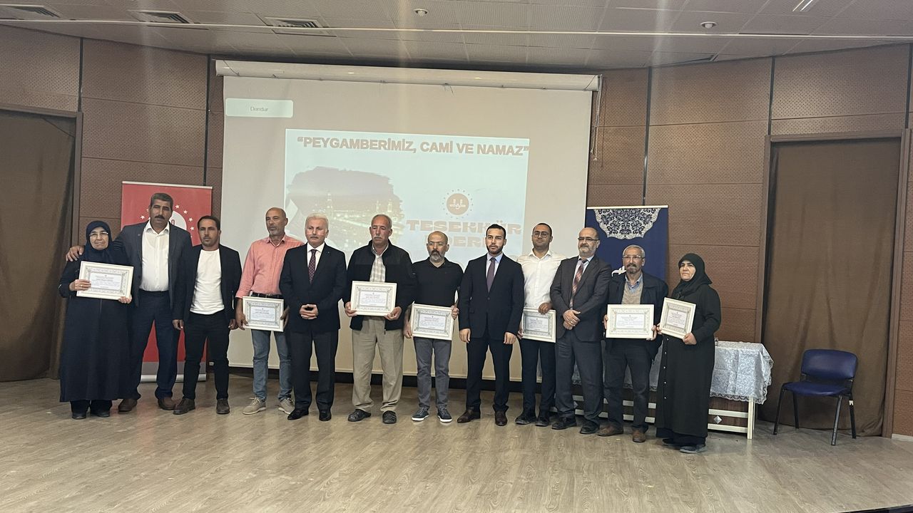 Konferansın sonunda, ilçede yapımı süren yeni Kur'an kursu inşaatına destek veren hayırseverlere teşekkür belgeleri takdim edildi.