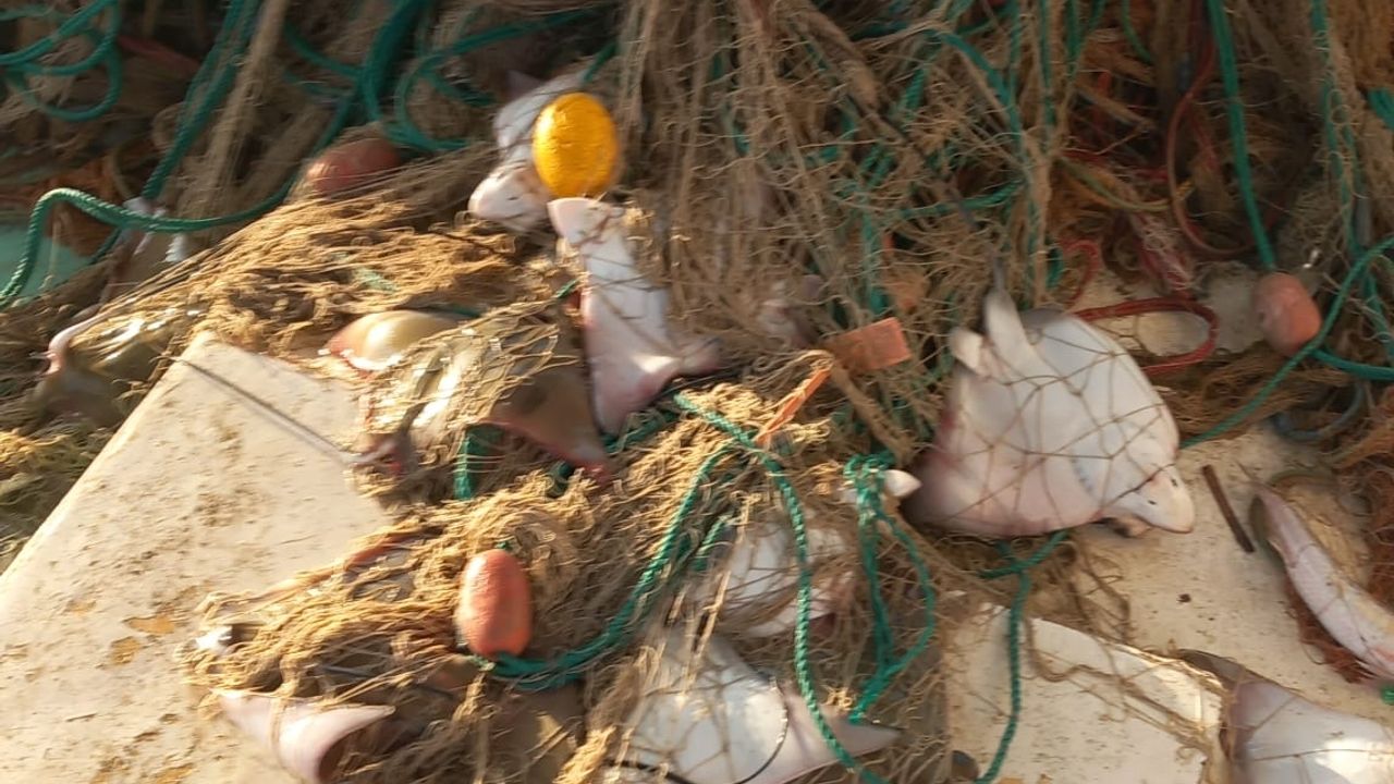 Sürü halinde vatoz yakalamanın şaşkınlığını yaşayan Büyükakın, vatozların hayatta olanlarını denize geri bıraktı.