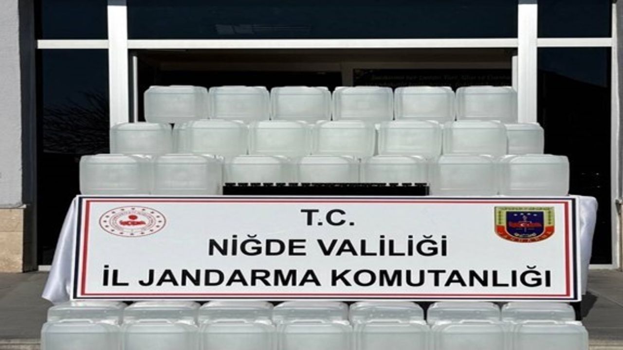 Niğde İl Jandarma Komutanlığı’nın sahte alkol operasyonunda 360 litre etil alkol ele geçirildi.