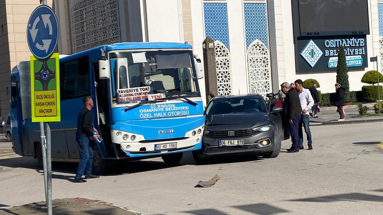 Edinilen bilgilere göre, Osmaniye Belediyesi hizmet binası önündeki kavşakta seyir halindeki “Osmaniye Belediyesi Özel Halk Otobüsü” ibareli minibüs ile gri renkli bir otomobil çarpıştı. Çarpışmanın etkisiyle otomobilin ön kısmında hasar meydana gelirken, minibüsün de ön tampon bölümünde maddi hasar oluştu. Kaza sonrası yola araç parçalarının savrulduğu görüldü.