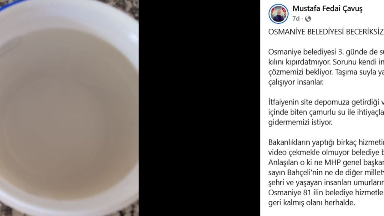“Osmaniye Belediyesi 3. günde de su kesintisi için kılını kıpırdatmıyor. Sorunu kendi imkanlarımızla çözmemizi bekliyor. Taşıma suyla yaşamaya çalışıyor insanlar.”