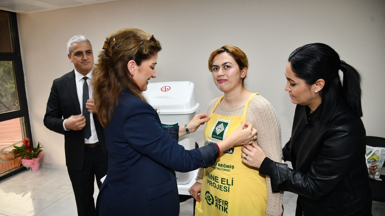 Etkinlik sonunda Aile Yaşam Merkezi’nde kurslara katılan tüm kadınlara çöp kovası, eldiven ve önlük hediye edilerek sıfır atık konusunda aktif rol almaları teşvik edildi.