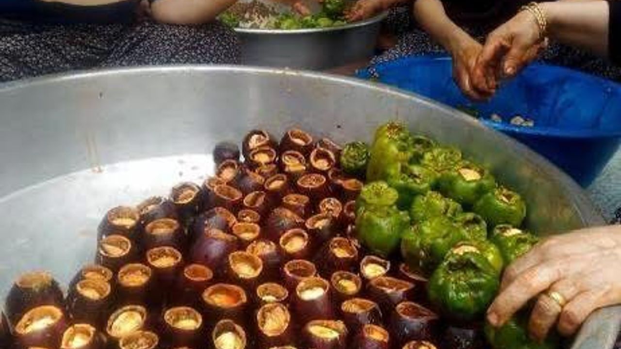 Düğün öncesi günlerde kadınlar bir araya gelerek imece usulüyle yüzlerce sarma ve dolma hazırlar. Genellikle iç harcında bulgur, pirinç, kıyma, domates ve baharatlar kullanılır. Bu dayanışma geleneği, hem düğün hazırlığını hızlandırır hem de ailelerin birlikteliğini güçlendirir.
