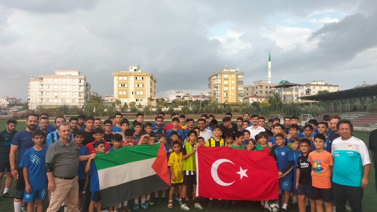 OSMANİYE (AA) - Osmaniye'nin Kadirli ilçesinde 1. Amatör Küme takımlarından 7 Mart Kadirli Demirspor oyuncuları antrenmana Türk ve Filistin bayraklarıyla çıktı.