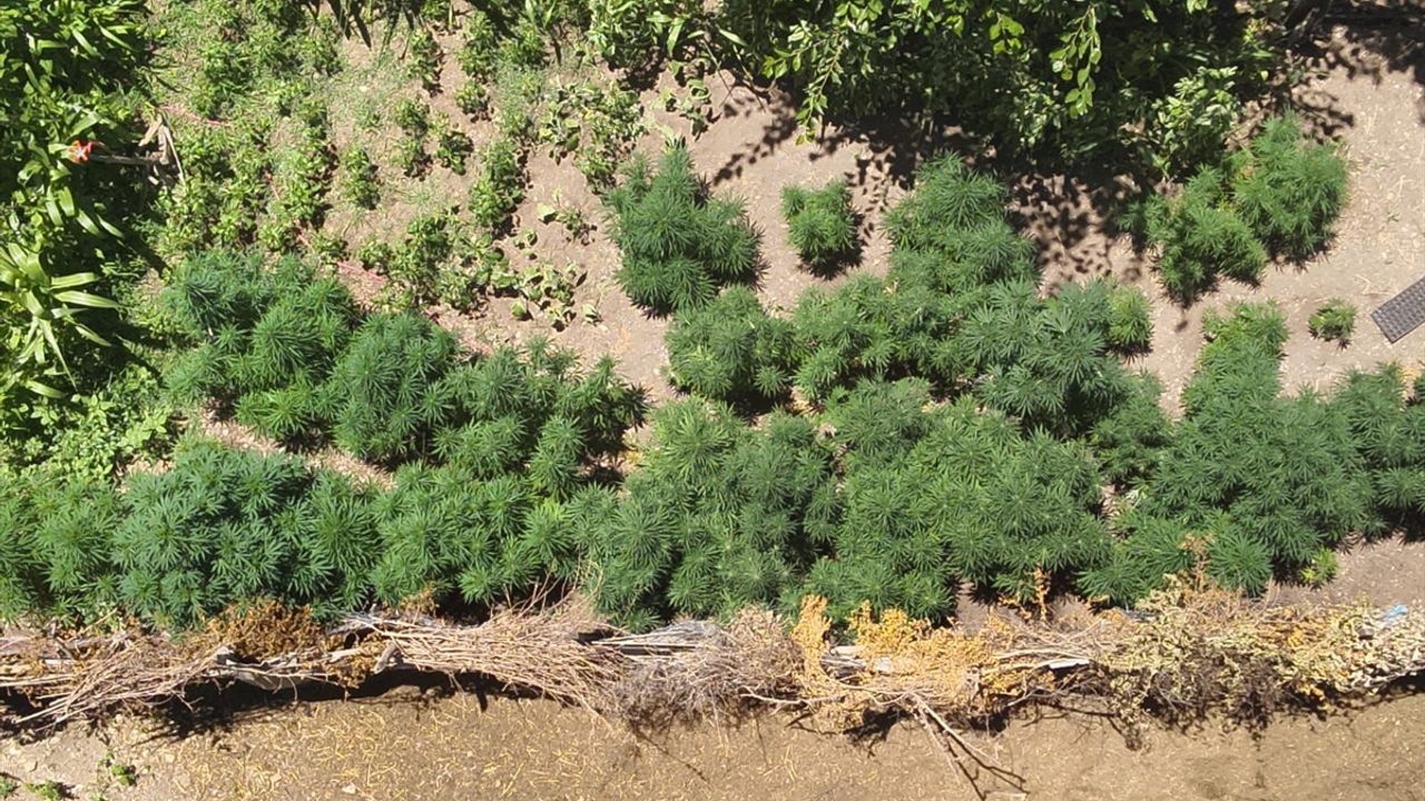 Evin bahçesinde ekili 50 kök Hint keneviri ele geçirildi. Evde yapılan aramada ise 449 gram esrar ile 169 gram Hint keneviri tohumu bulundu, A.A. gözaltına alındı.