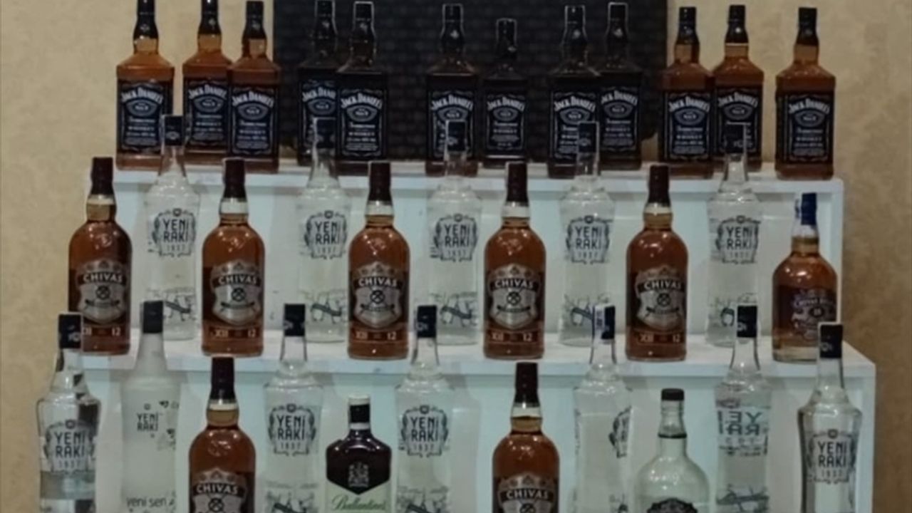 Aramada, 39 şişe gümrük kaçağı içki ile 5,5 litre el yapımı sahte içki ele geçirildi.