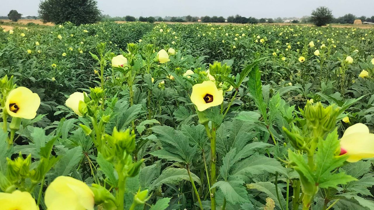 Üretim alanındaki bamyaların fotoğrafları, kaliteli ve yüksek verimli üretimin önemini gözler önüne seriyor.