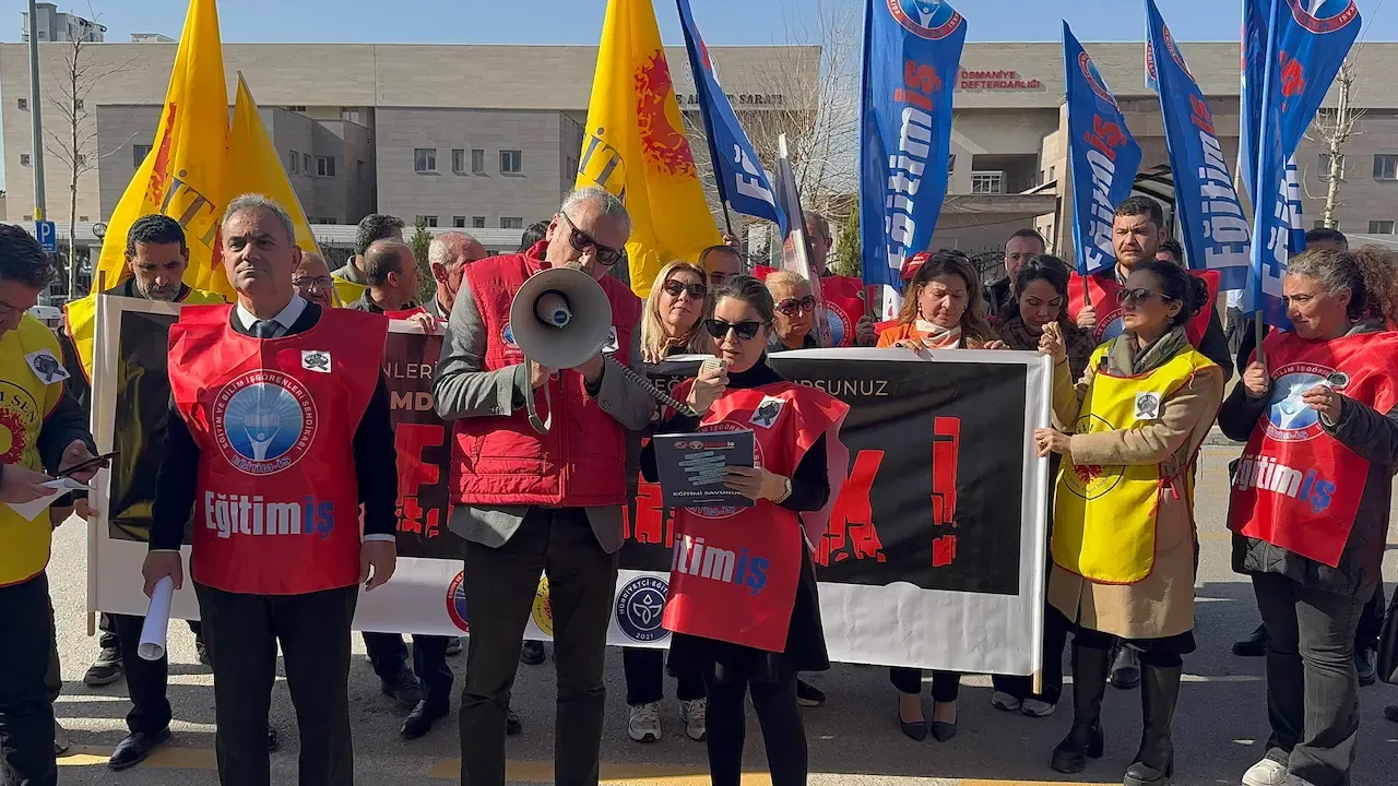 Osmaniye Valiliği önünde basın açıklaması yapan Eğitim-İş Osmaniye Şubesi, okullarda artan şiddet olaylarına karşı “artık yeter” diyerek acil ve bağlayıcı güvenlik önlemleri çağrısında bulundu. Açıklamayı Eğitim-İş Osmaniye İl Şube Örgütlenme Sekreteri Saadet Tekerek yaptı.