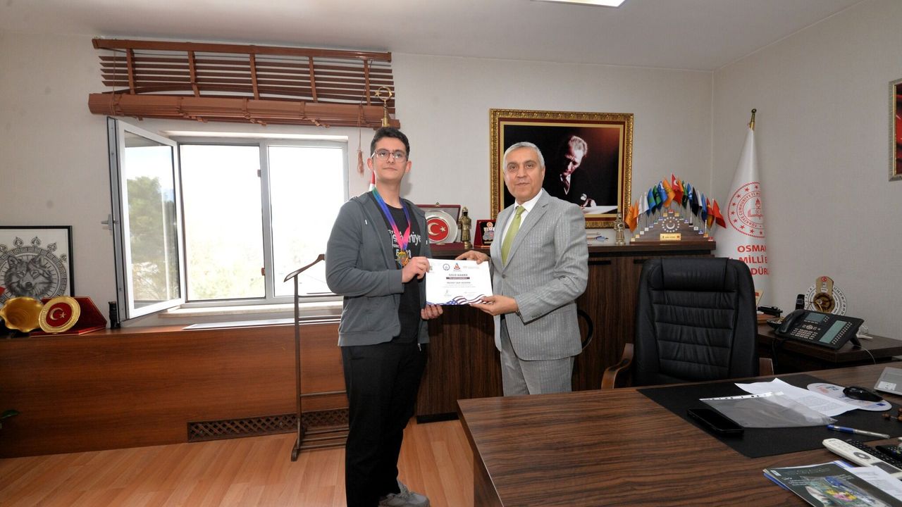 Osmaniye İl Milli Eğitim Müdürlüğü, uluslararası arenada önemli bir başarıya imza atan TOBB Osmaniye Fen Lisesi öğrencisi Mehmet Akif Akdemir’i ağırladı. İl Milli Eğitim Müdürü Aydın Albak, Amerikan Matematik Olimpiyatları’nda derece elde eden başarılı öğrenciyle bir araya geldi.