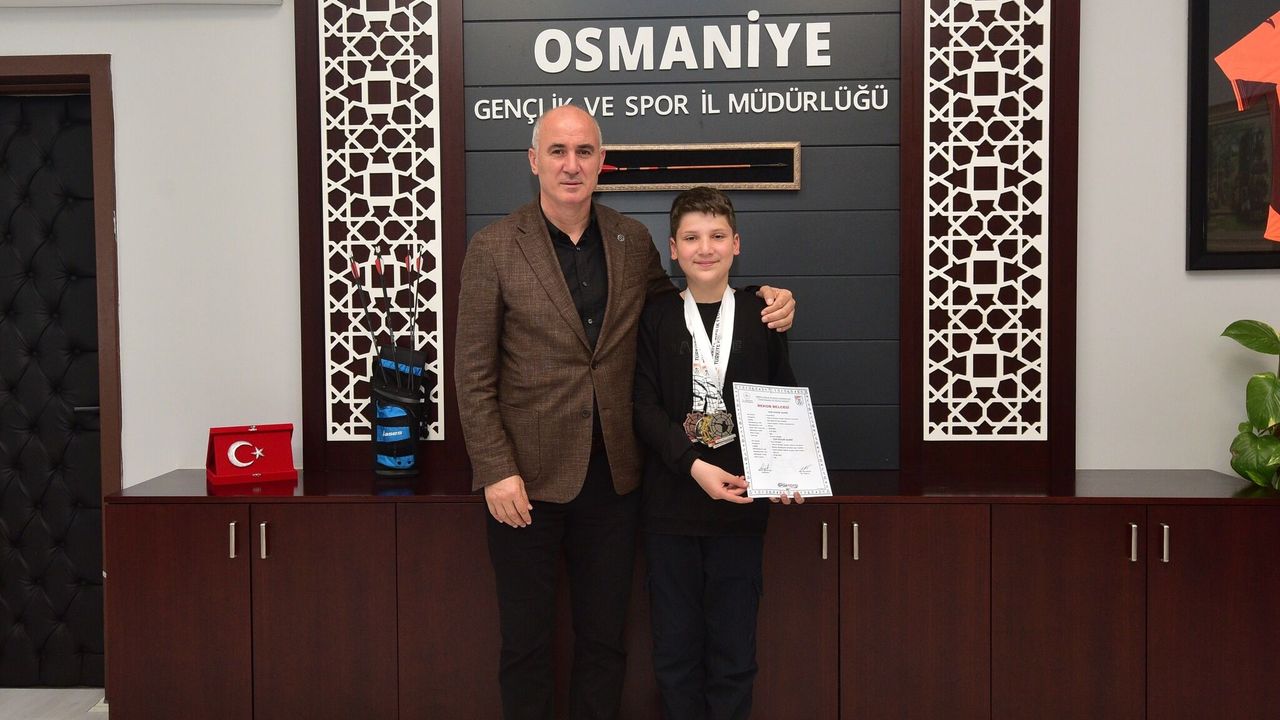 Başarısının ardından Yusuf Özay, Osmaniye Gençlik ve Spor İl Müdürü Yusuf Çebi’yi makamında ziyaret etti.