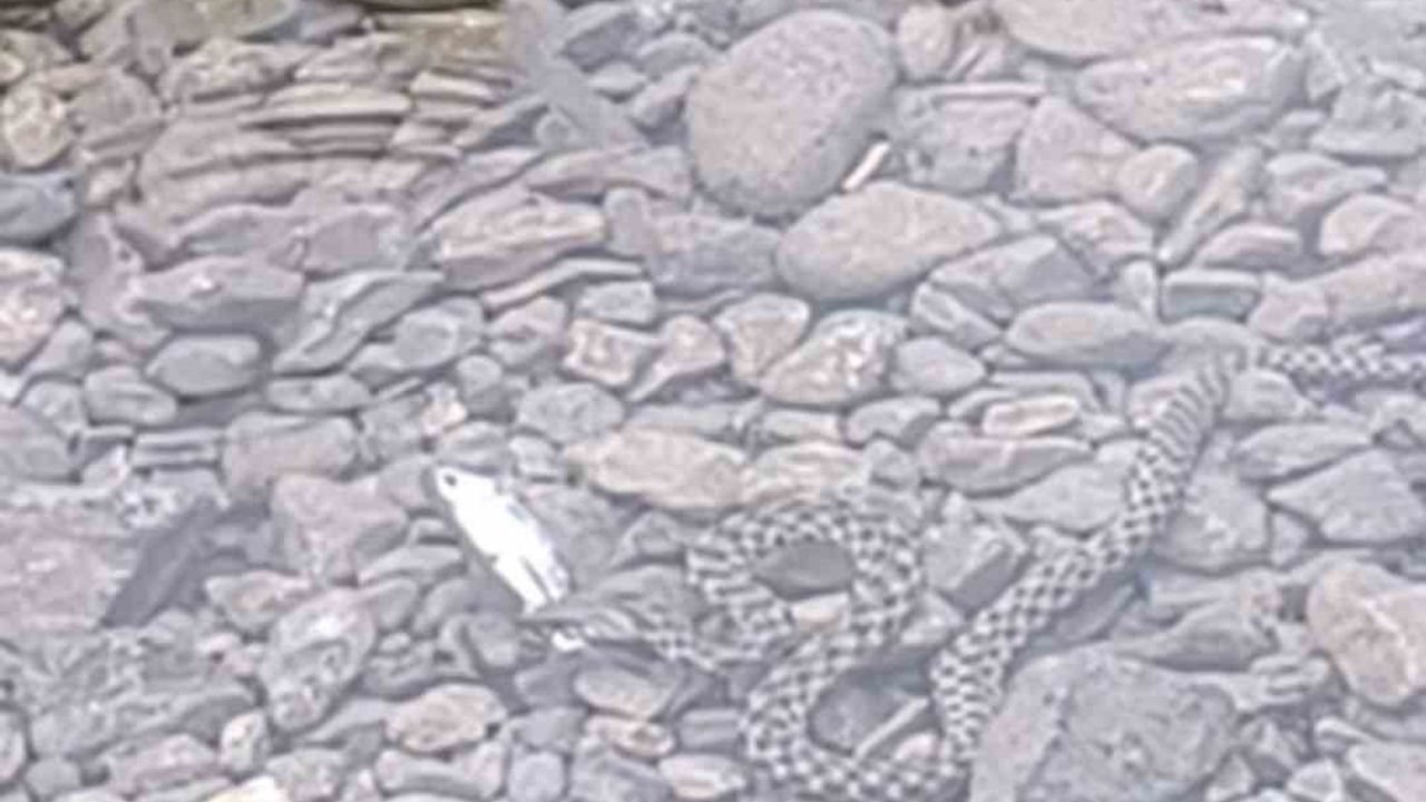 Görüntülerde yılanın suyun içinde sessizce hareket ettiği, balığı uzun süre takip ettikten sonra ani bir hamleyle yakaladığı görülüyor. Balığı yakalayan yılan, bir süre suda süzüldükten sonra avını ağzında taşıyarak sudan çıktı ve gözlerden kayboldu.
