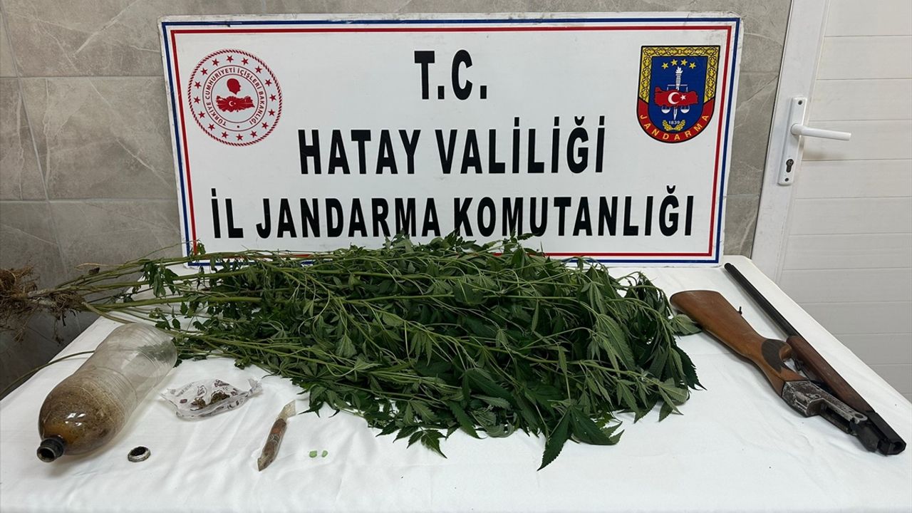 Aramalarda, 5 kök Hint keneviri, 15 gram esrar, 2 uyuşturucu hap ve av tüfeği ele geçirildi.