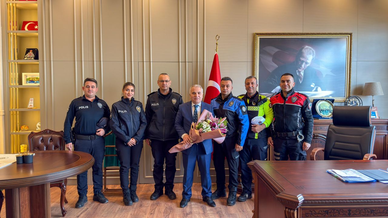 Duru, ziyarette, polis teşkilatının toplumun huzur ve güvenliğini sağlamada önemli görev üstlendiğini belirterek, Türk Polis Teşkilatının 181'inci yılını kutladı.