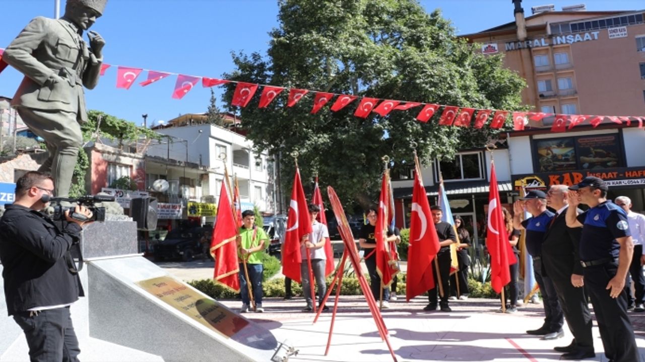 Pozantı Kaymakamı Fatih Karamahmut ve Belediye Başkanı Mustafa Çay, ilçe merkezindeki Atatürk Anıtı'na çelenk sundu.