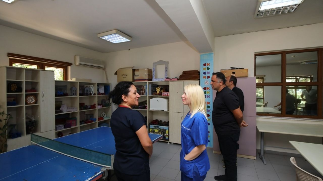 Üniversiteden yapılan açıklamaya göre, Özkan, merkezde hastalarla ve çalışanlarla sohbet etti.
