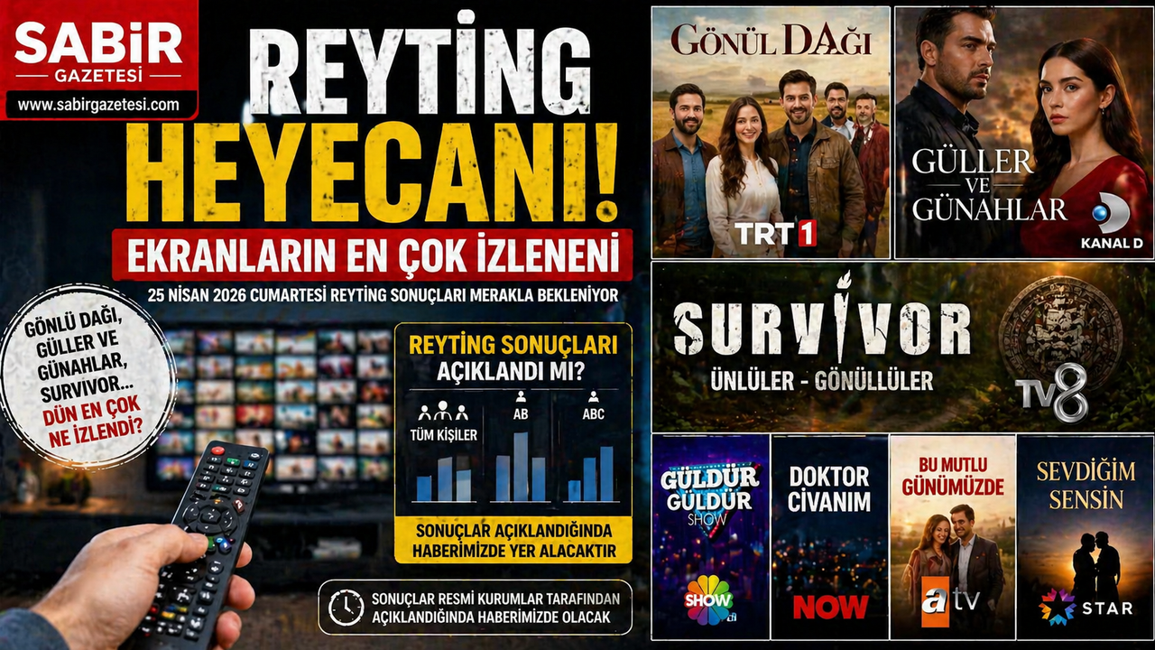 Televizyon dünyasında 25 Nisan 2026 Cumartesi akşamı ekranlara gelen yapımlar, izleyiciyi yine ekran başına kilitledi. Farklı kanallarda yayınlanan diziler, yarışmalar ve eğlence programları reyting yarışını zirveye taşırken, sonuçlar büyük merak konusu oldu.