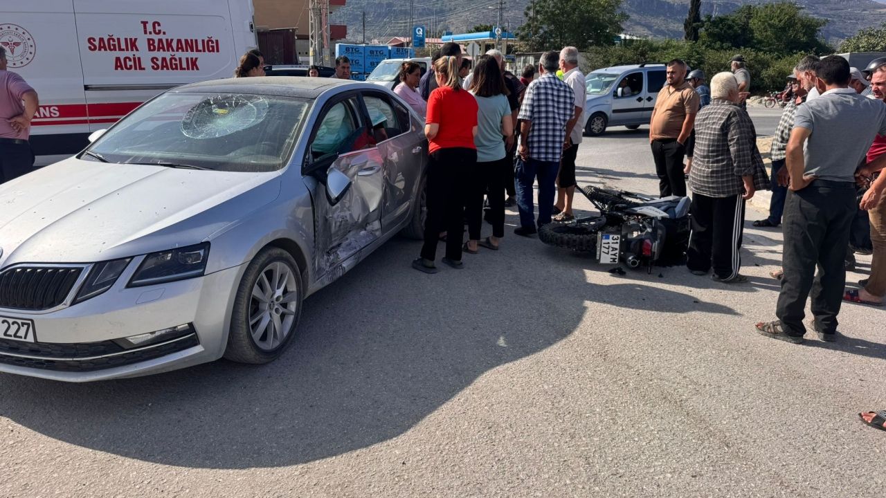 Yeşilada Mahallesi'nde Ş.R'nin kullandığı 31 AR 227 plakalı otomobil ile S.A. idaresindeki 31 AYM 177 plakalı motosiklet çarpıştı.