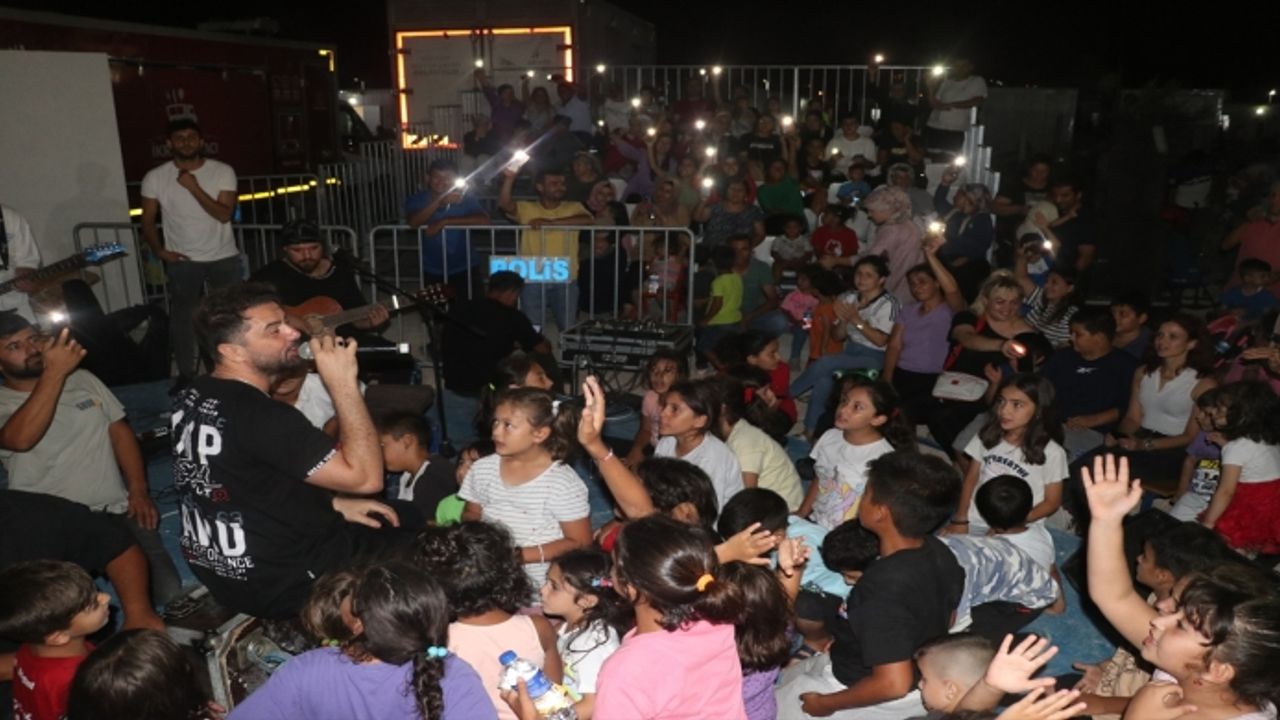 Koç Holding Konteyner Kenti'nde düzenlenen etkinlikte depremzedeler sanatçı Akar'ın seslendirdiği şarkılarla eğlendi.