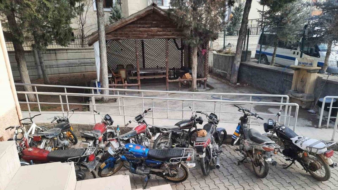 Kırşehir’in Mucur ilçesinde polis ekiplerince yapılan denetimlerde şase ve motor numaraları kazınmış 8 motosiklete el konuldu.