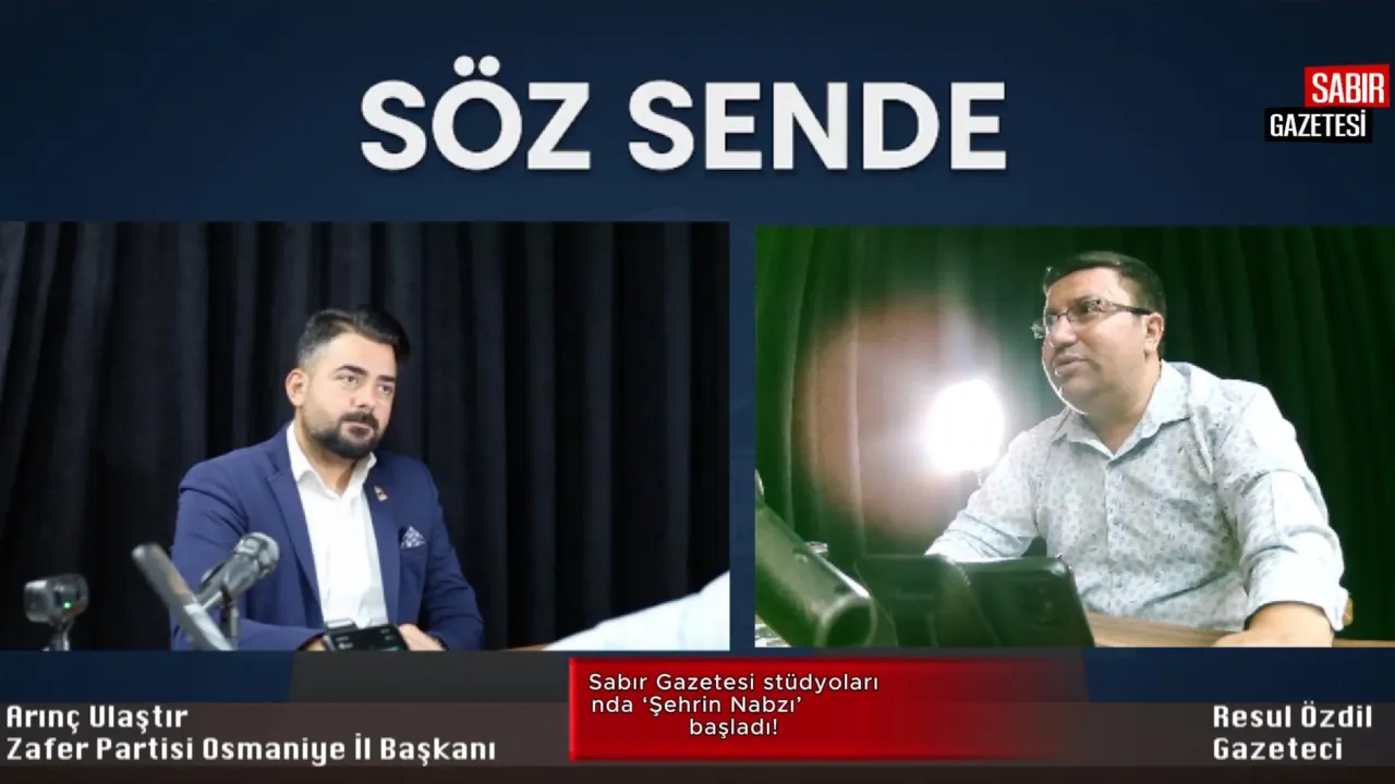 Sabır Gazetesi stüdyolarında hazırlanan ve YouTube kanalında yayınlanan “Şehrin Nabzı” programının ilk konuğu Zafer Partisi Osmaniye İl Başkanı Arınç Ulaştır oldu. Gazeteci Resul Özdil’in sorularını yanıtlayan Ulaştır, Türkiye'nin göçmen politikası, yerel yönetim anlayışı, Osmaniye’nin mevcut durumu ve genç seçmen profiline ilişkin dikkat çekici açıklamalarda bulundu.