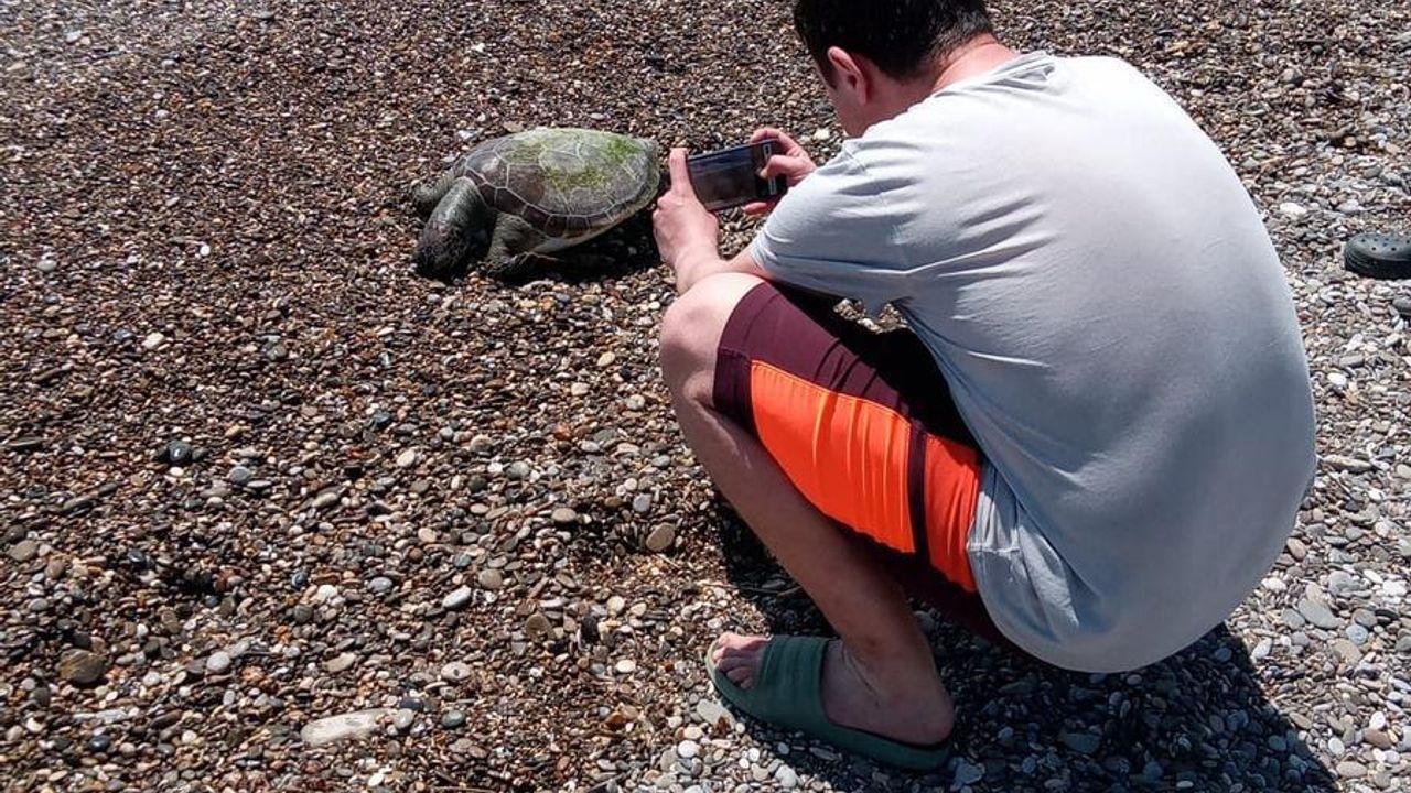 Boğazkent Sahili'nde bir caretta carettanın hareketsiz durduğunu görenler, durumu belediye ekiplerine bildirdi.
