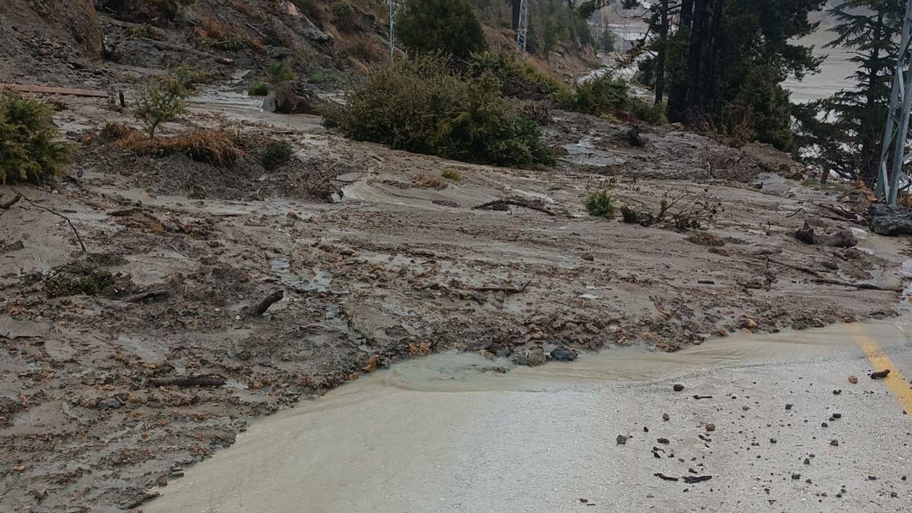 Yağışların etkili olduğu bölgede yamaçtan kopan toprak ve kaya parçaları karayoluna sürüklendi. Güvenlik gerekçesiyle araç geçişine izin verilmezken, ekiplerin yolu yeniden ulaşıma açmak için çalışma başlatması bekleniyor.