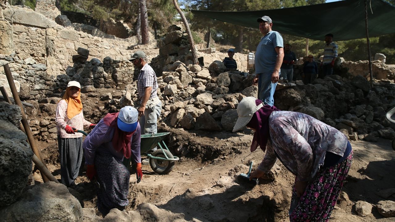 ANTALYA (AA) - MUSTAFA KURT - Antalya'nın Alanya ilçesindeki Syedra Antik Kenti'nde yürütülen kazılarda, çoğu kırsal kesimden gelen kadın ve erkekler de çalışıyor.