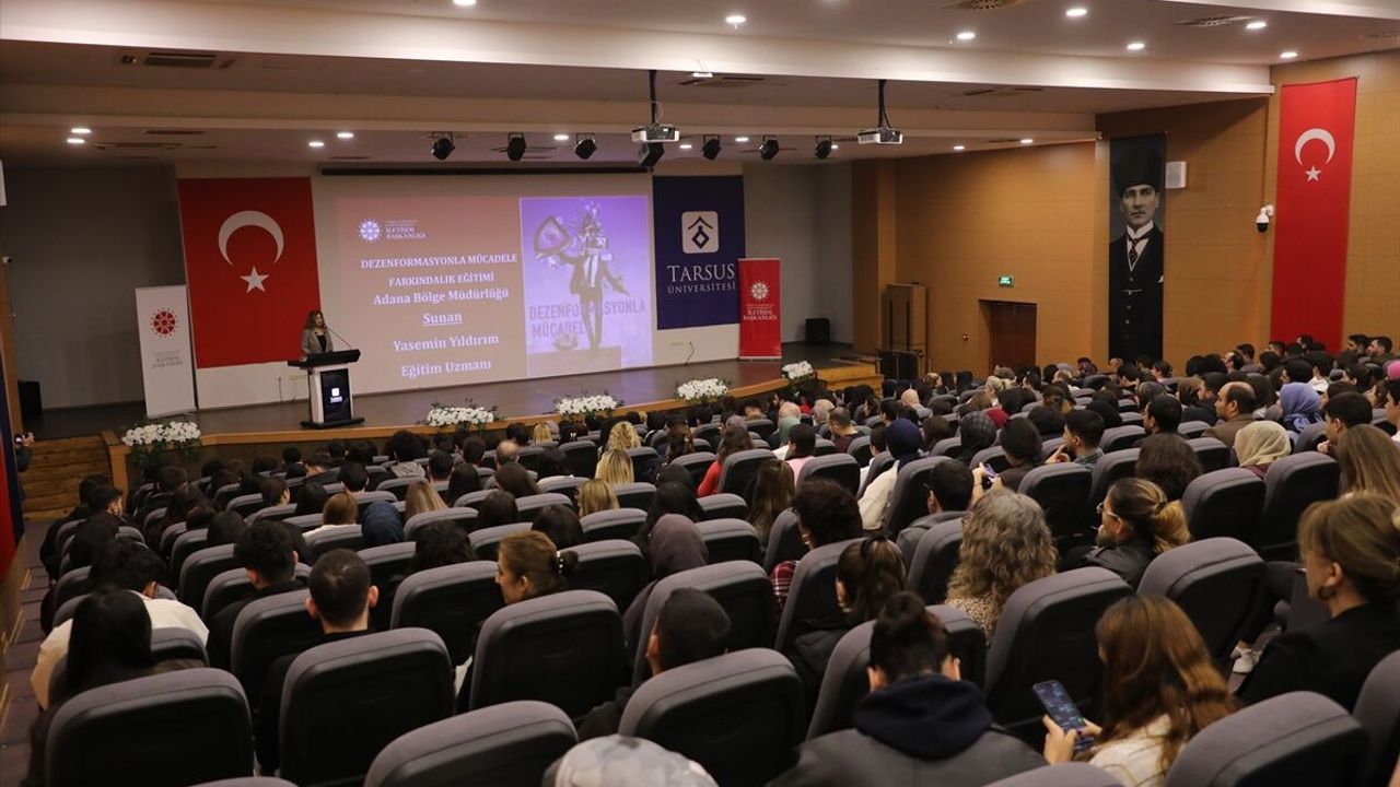 MERSİN (AA) - Cumhurbaşkanlığı İletişim Başkanlığı Adana Bölge Müdürlüğü tarafından Tarsus Üniversitesi'nde 'Dezenformasyonla Mücadele Farkındalık Eğitimi' gerçekleştirildi.